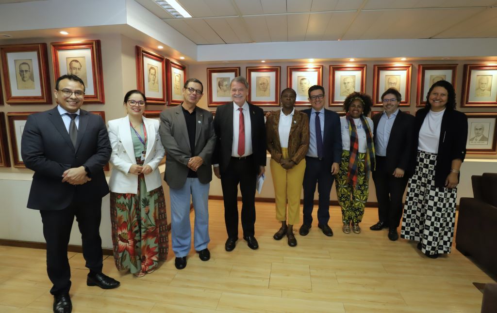 Ao lado do presidente do TCE-MG, Durval Ângelo, o conselheiro Edson Ferrari participou na terça-feira (26/ago) de reunião com integrantes do Fundo das Nações Unidas para a Infância (Unicef). Estiveram presentes a coordenadora para o desenvolvimento da criança, Helena Oliveira Silva, e a especialista em desenvolvimento infantil Maria Luísa Passos. No encontro, foram discutidas ações relativas a projetos sobre primeira infância e semiárido.