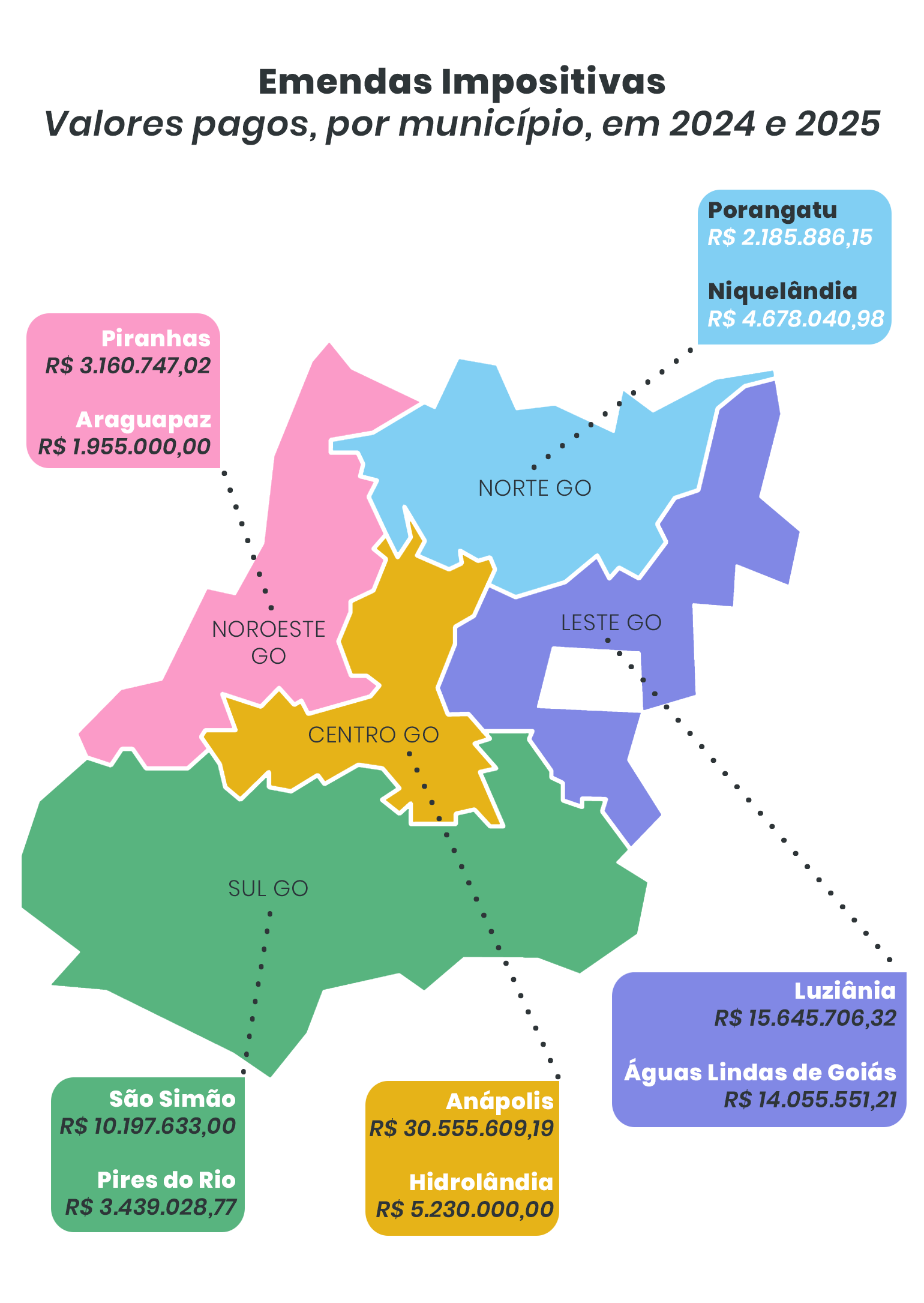 Confira os municípios e o valor total pago, em emendas impositivas, em 2024 e 2025: