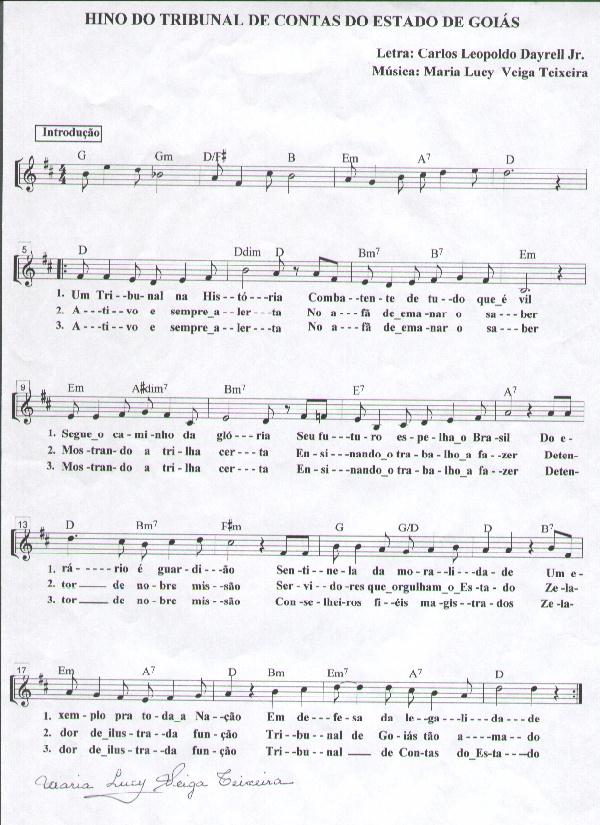 Partitura do Hino TCE-GO (pdf). É necessário ter instalado no micro o aplicativo Acrobat Reader.