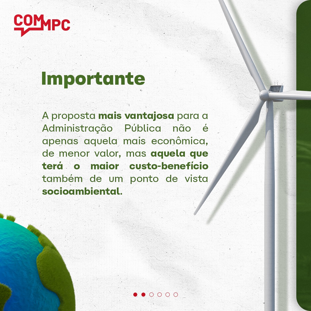 VOCÊ SABIA QUE OS GESTORES PÚBLICOS DEVEM OBSERVAR OS CRITÉRIOS DE SUSTENTABILIDADE NA CONTRATAÇÃO DE BENS E SERVIÇOS? As "Compras Públicas Sustentáveis" ou "Licitações Sustentáveis" se referem aos procedimentos para contratação de bens e serviços públicos, que além dos critérios de isonomia e economicidade, devem levar em conta o critério de sustentabilidade para alcançar a proposta mais vantajosa, tanto do ponto de vista econômico quanto socioambiental. Ficou interessado sobre o tema? Então confira o post que o #MPC explica para você!